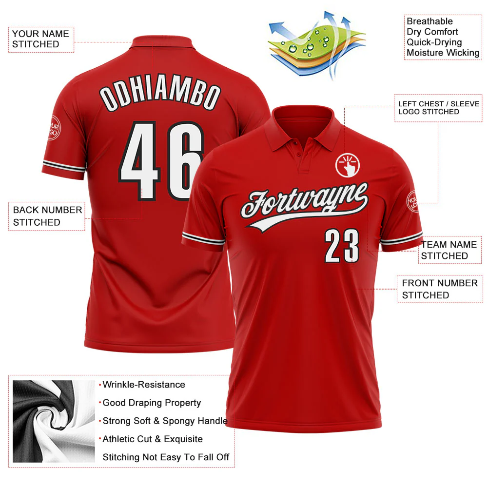 Custom Red White-Black Performance Vapor Golf Polo Shirt