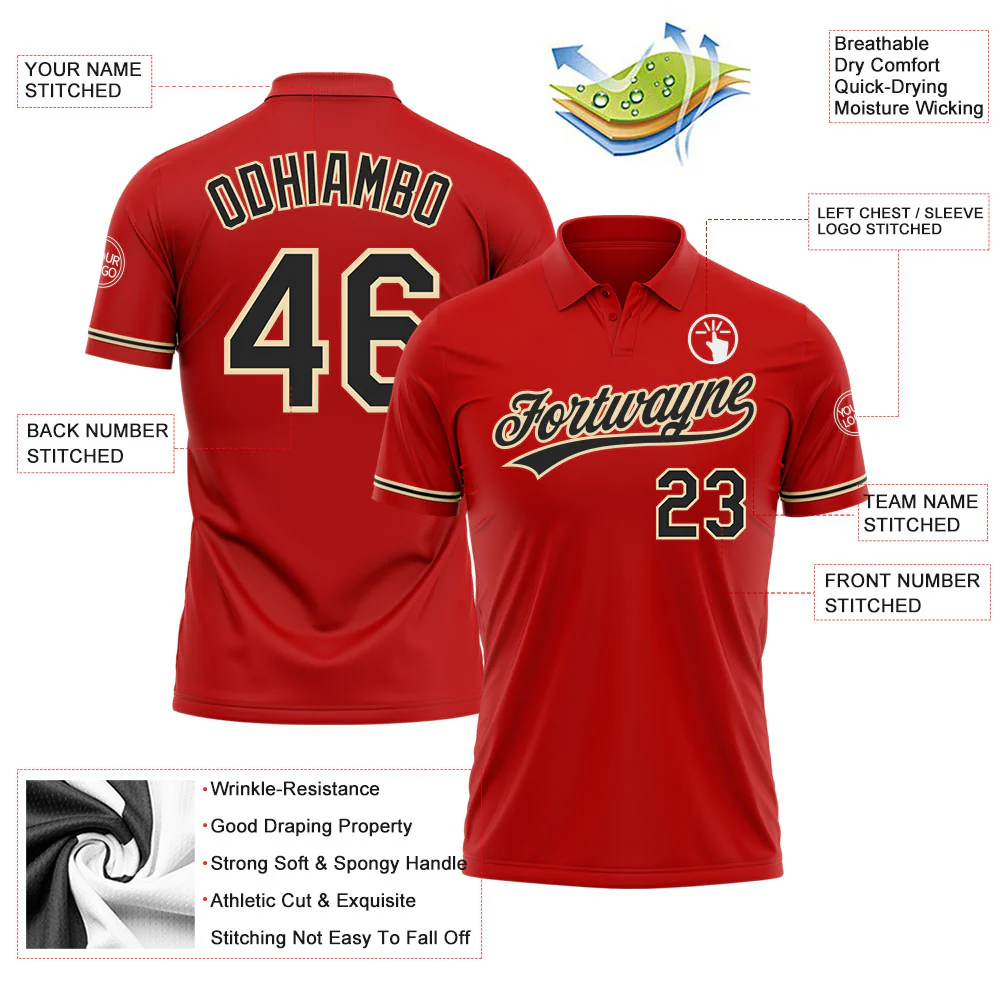 Custom Red Black-City Cream Performance Vapor Golf Polo Shirt