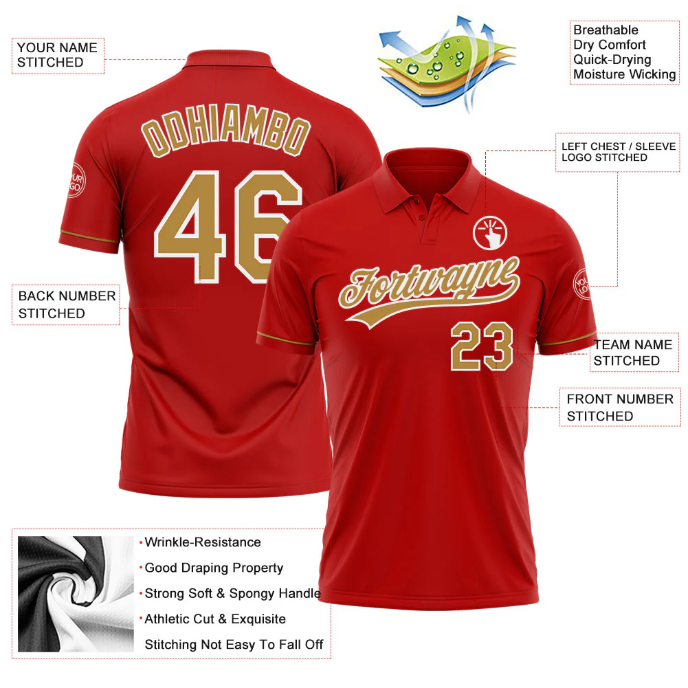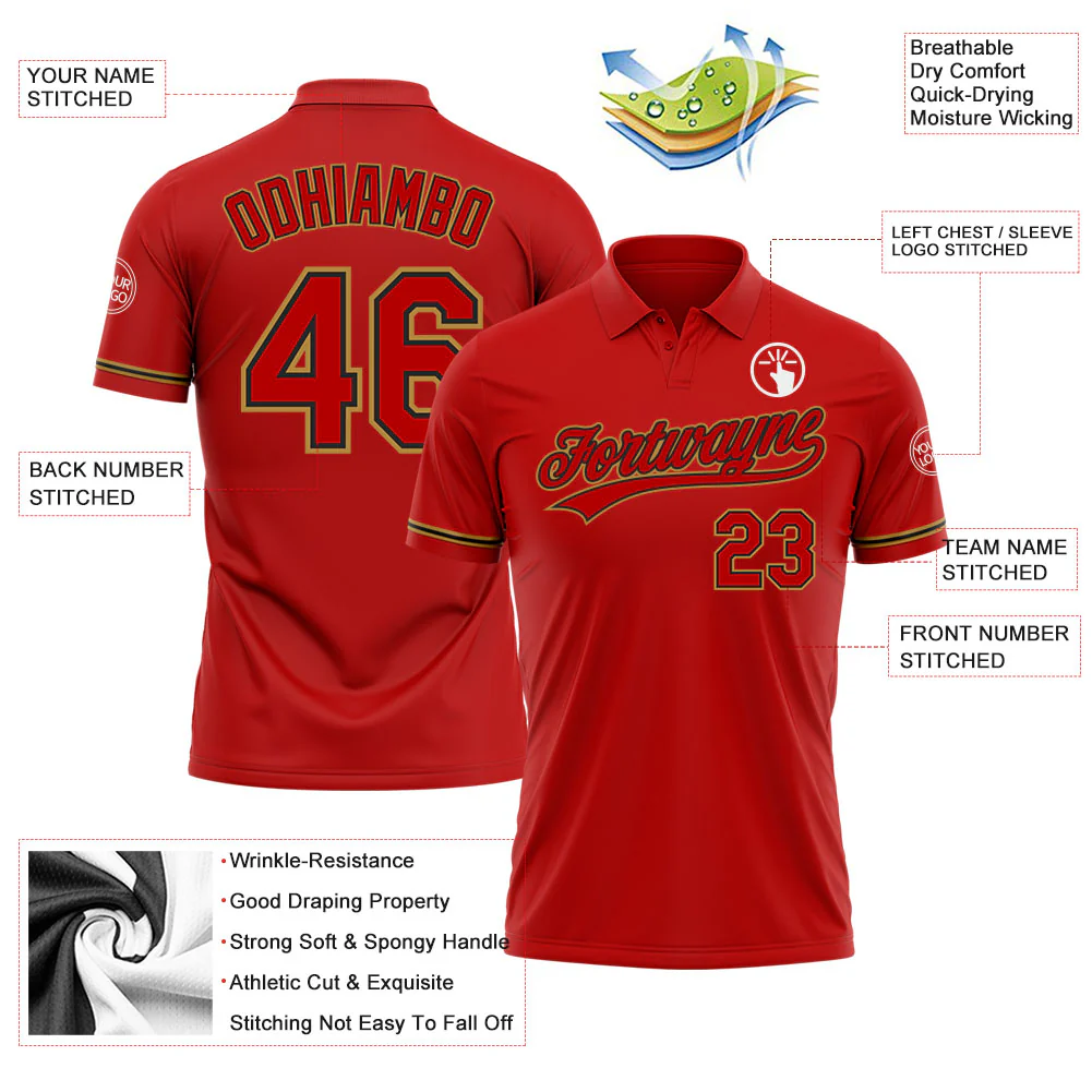 Custom Red Red Black-Old Gold Performance Vapor Golf Polo Shirt