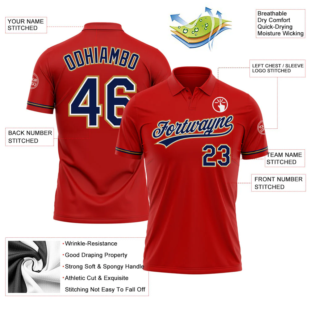 Custom Red Navy-Old Gold Performance Vapor Golf Polo Shirt