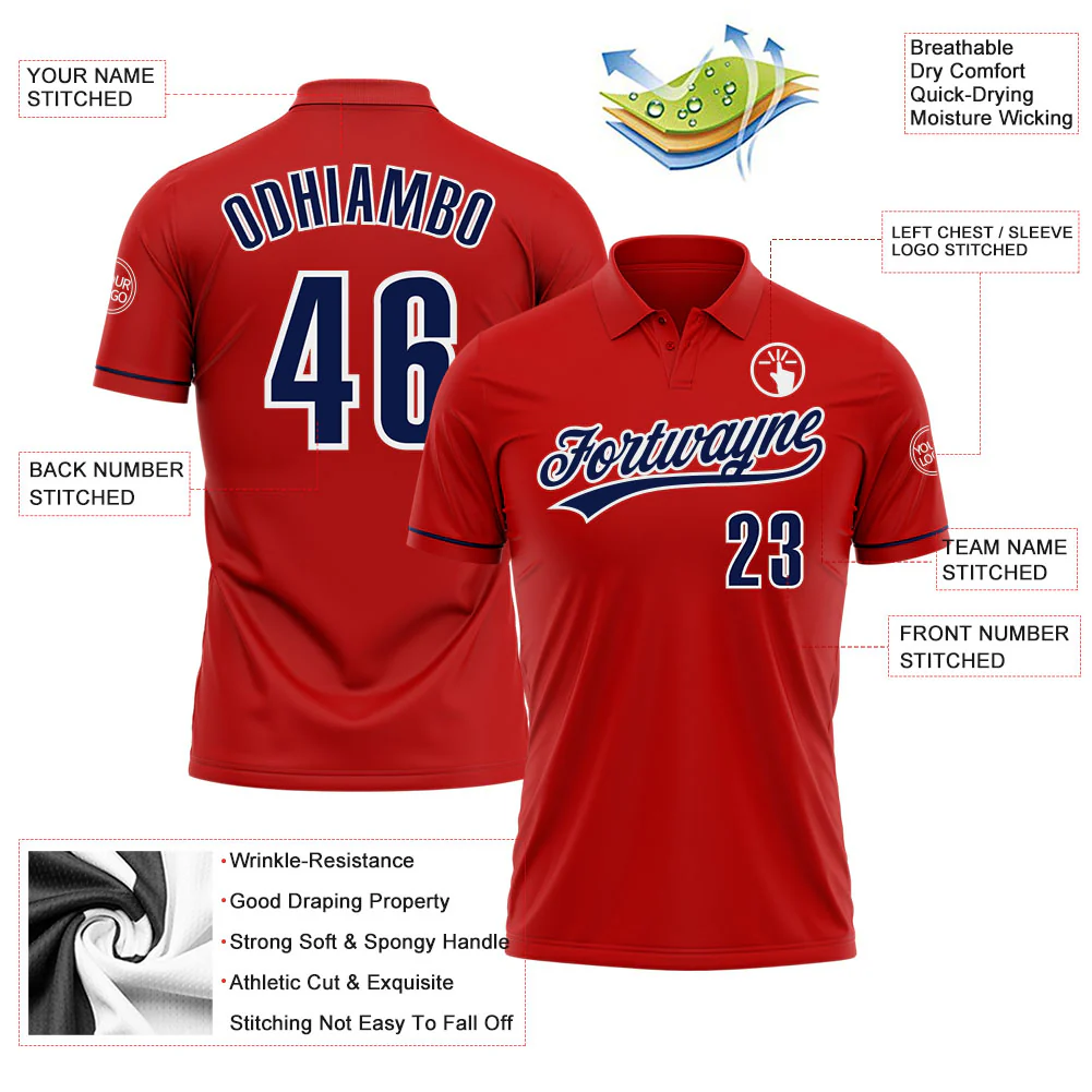 Custom Red Navy-White Performance Vapor Golf Polo Shirt