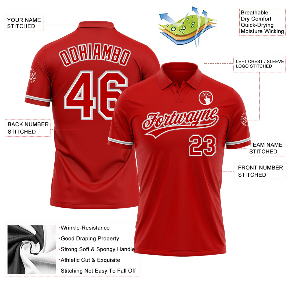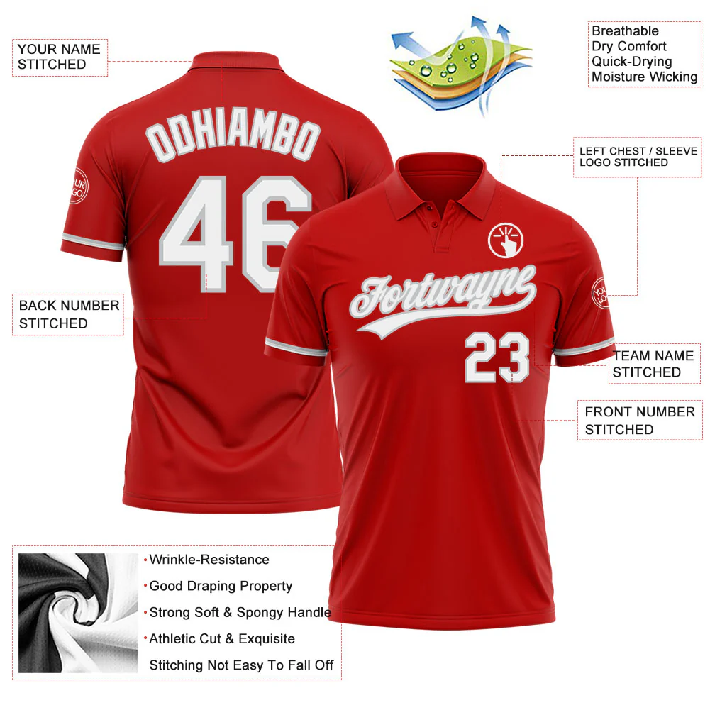 Custom Red White-Gray Performance Vapor Golf Polo Shirt