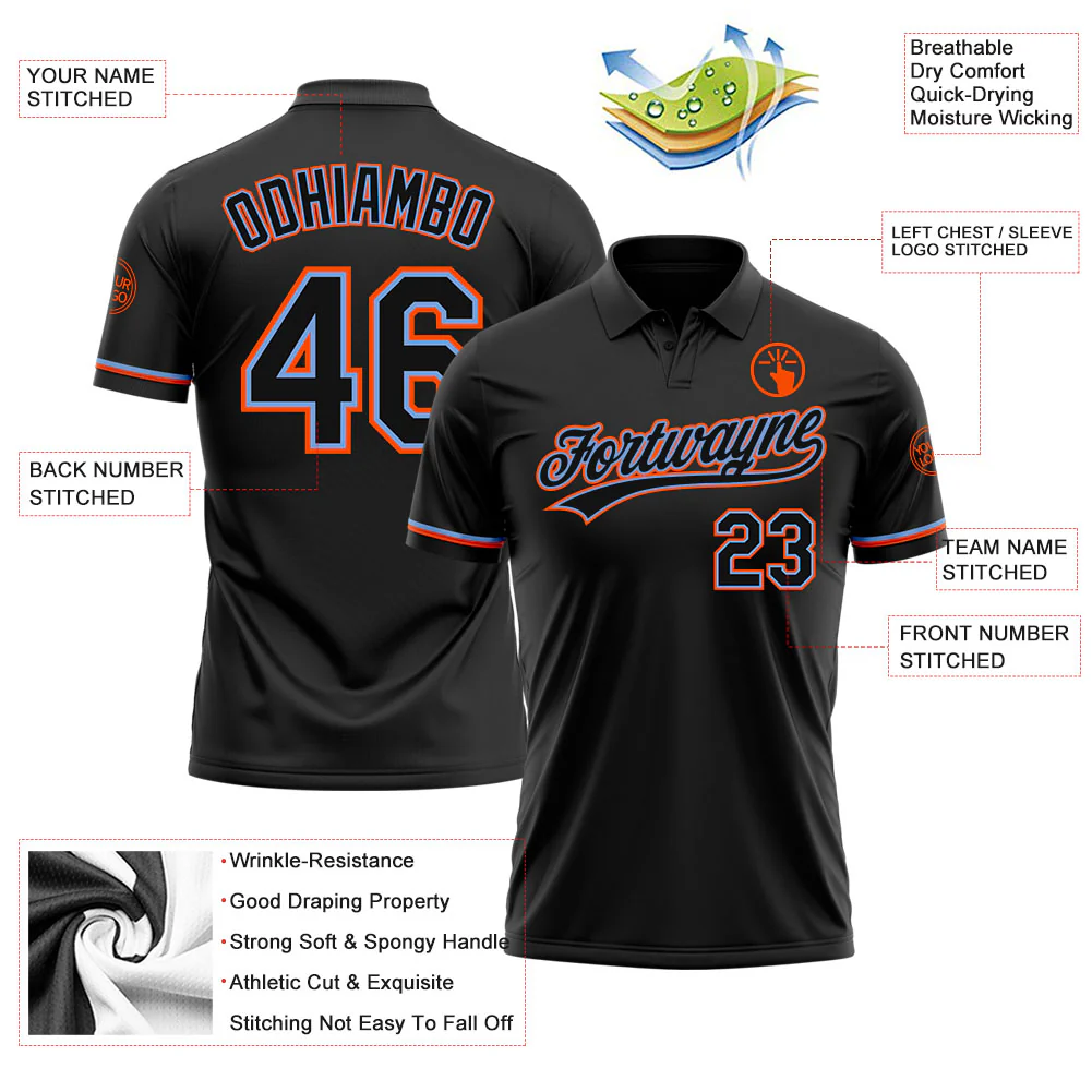 Custom Black Black Powder Blue-Orange Performance Vapor Golf Polo Shirt