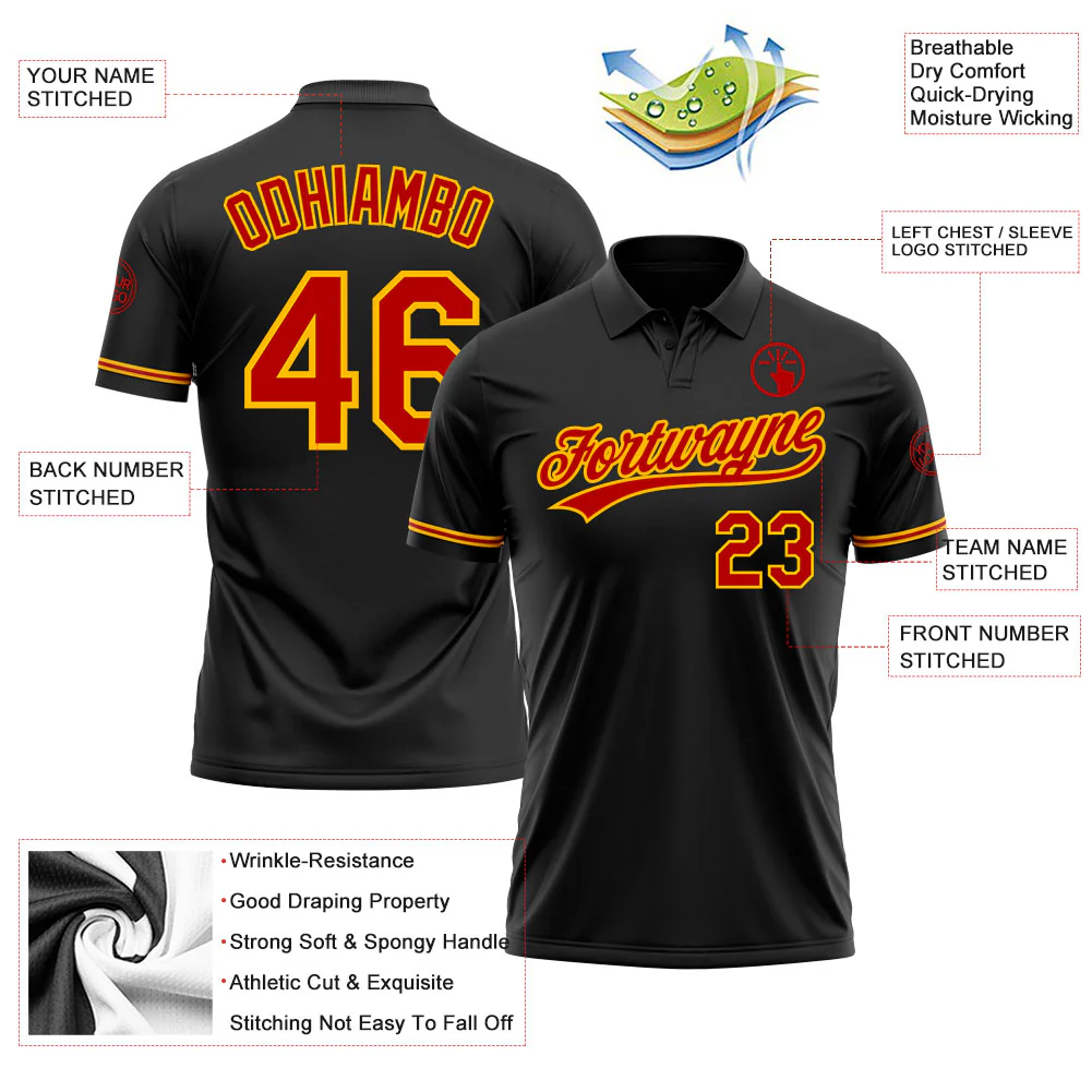 Custom Black Crimson-Yellow Performance Vapor Golf Polo Shirt