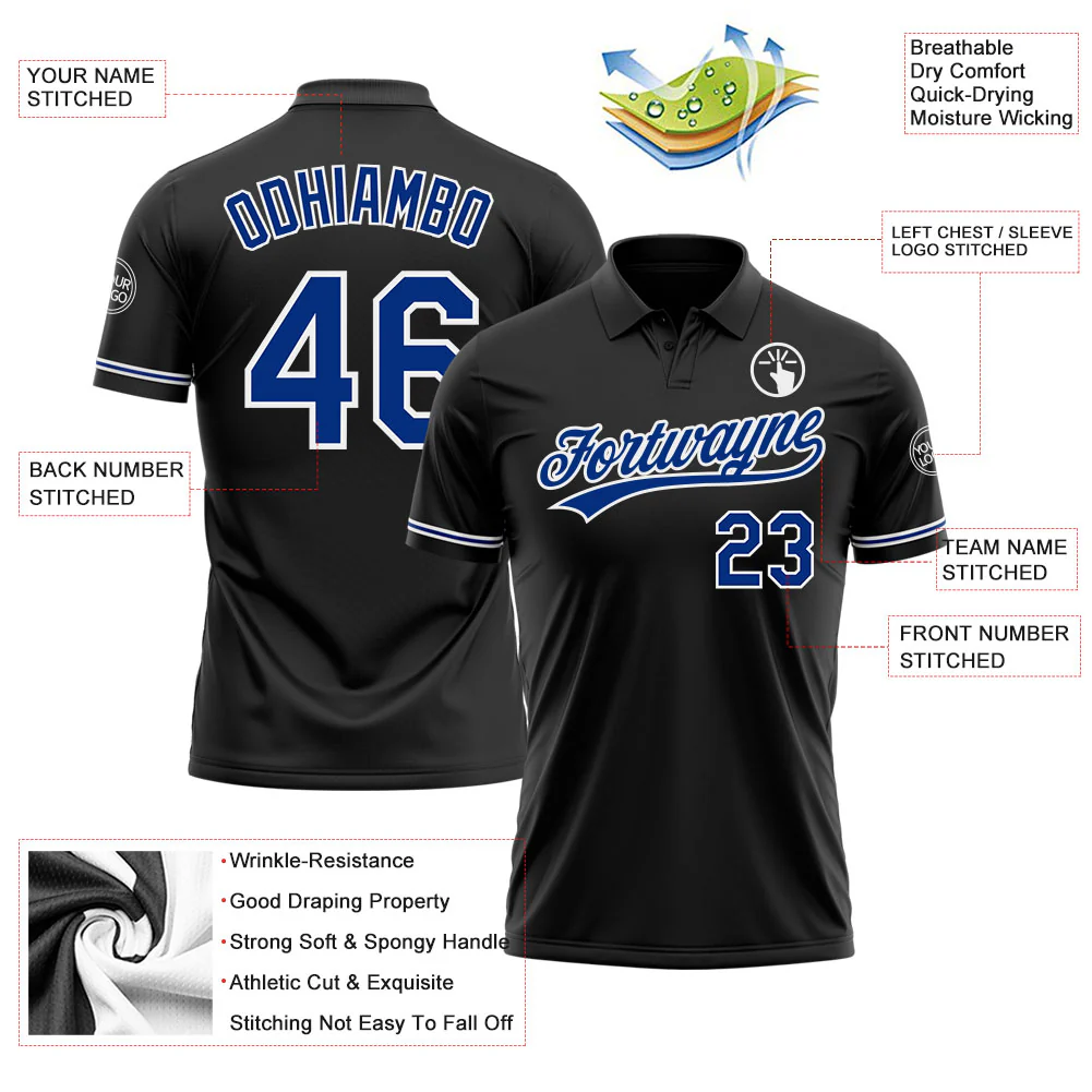 Custom Black Royal-White Performance Vapor Golf Polo Shirt