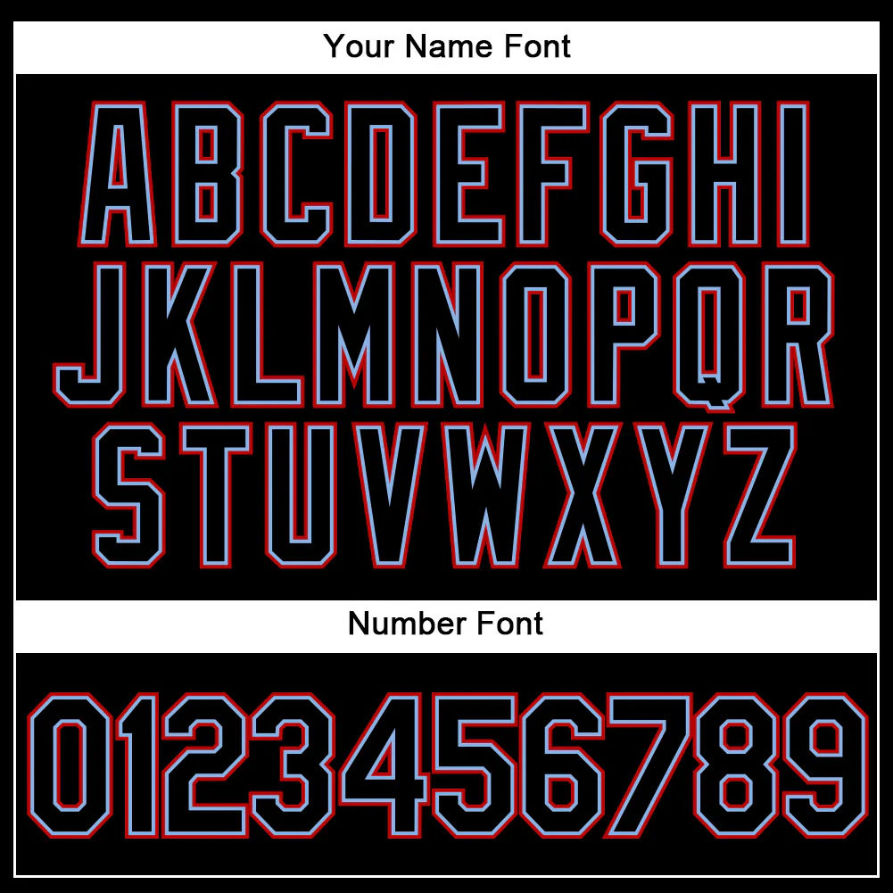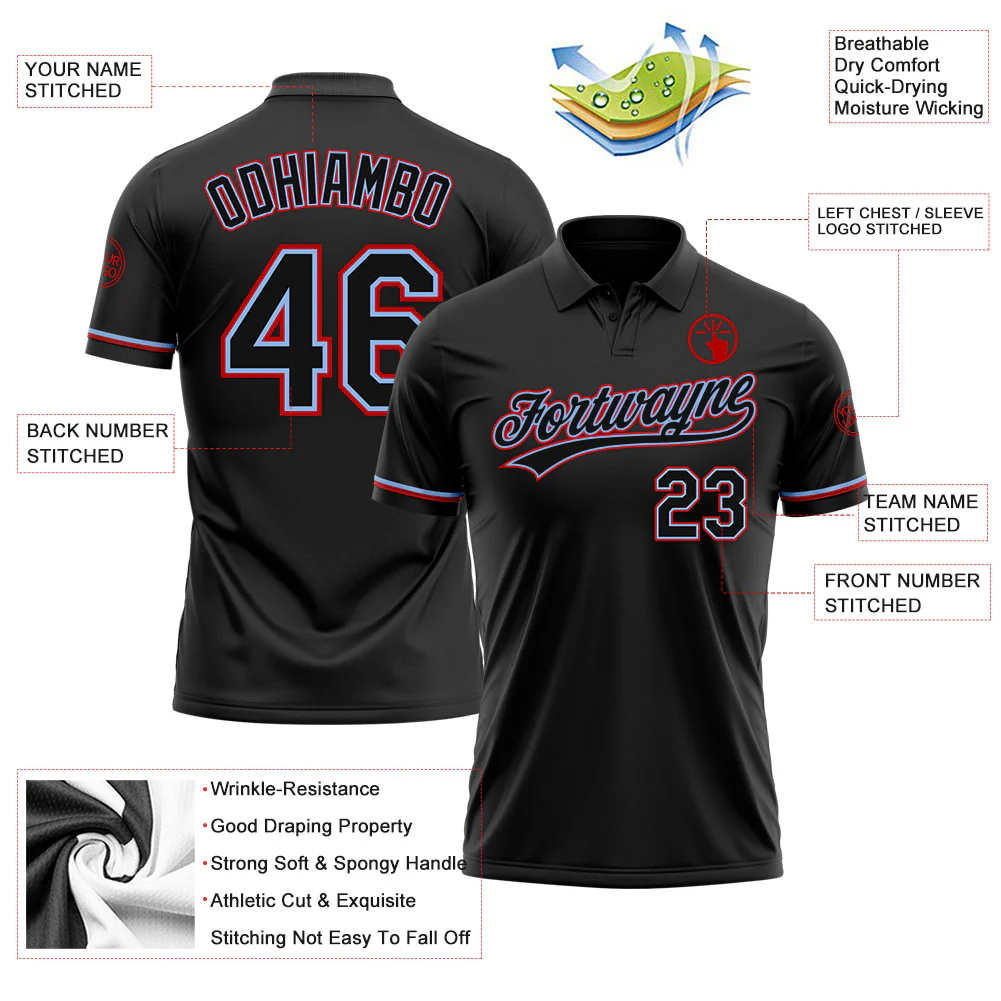 Custom Black Black Light Blue-Red Performance Vapor Golf Polo Shirt