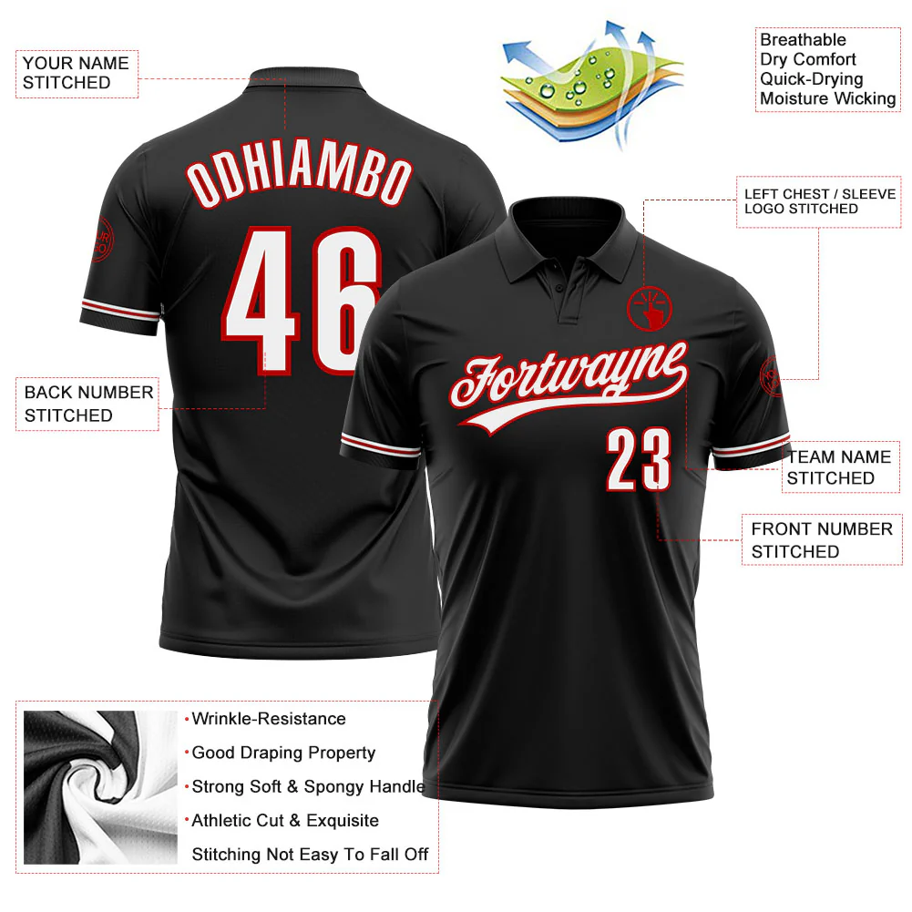 Custom Black Red-White Performance Vapor Golf Polo Shirt