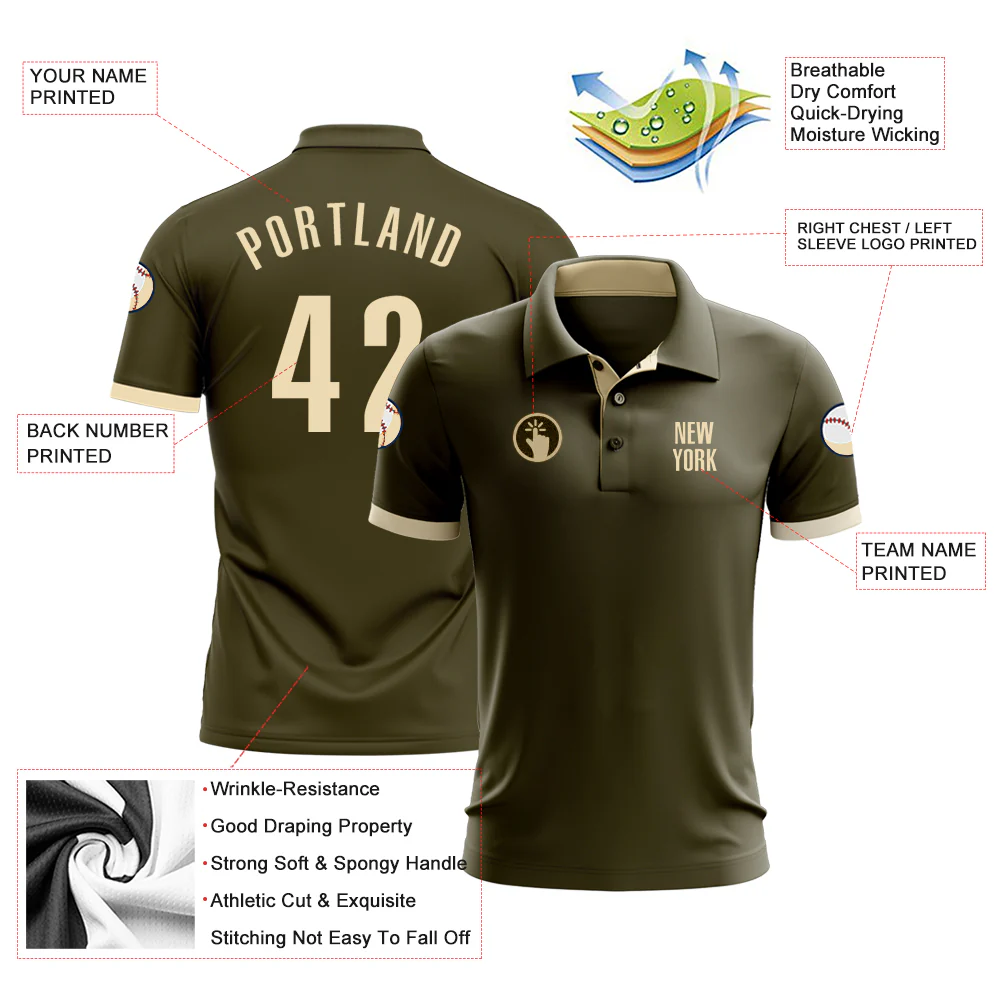 Custom Olive Cream Performance Salute To Service Golf Polo Shirt