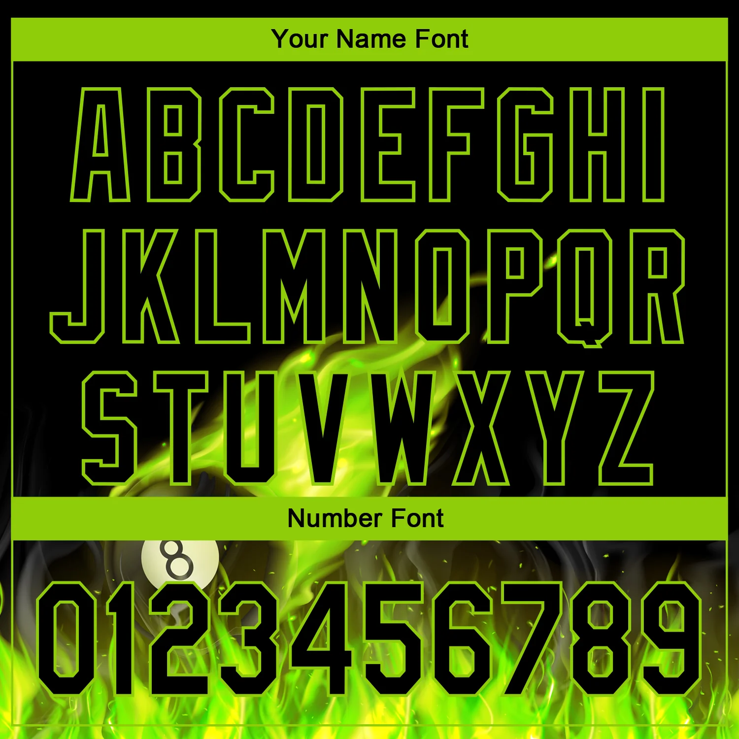 Custom Black Neon Green 3D Pattern Design Flame Billiards 8 Ball Performance Polo Shirt