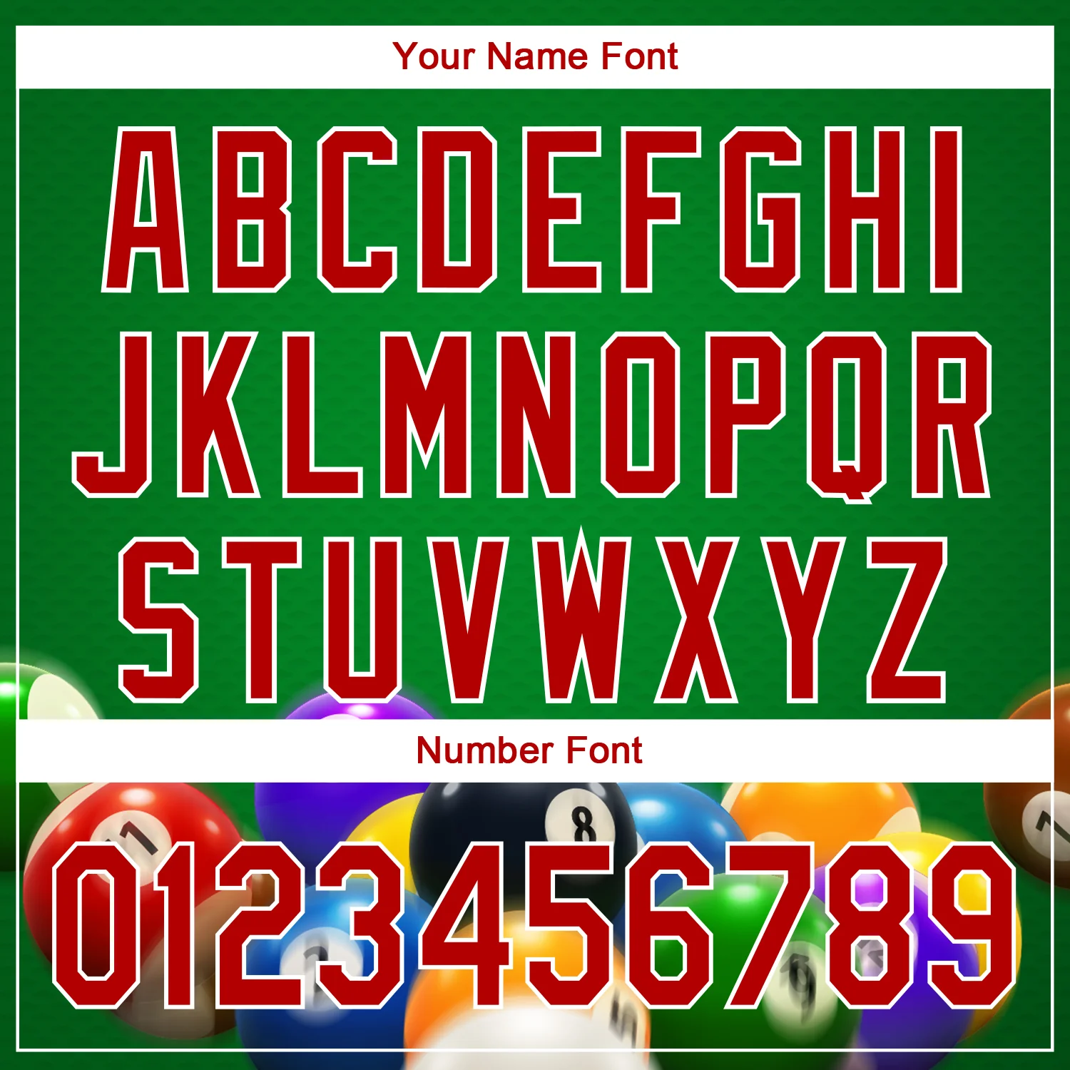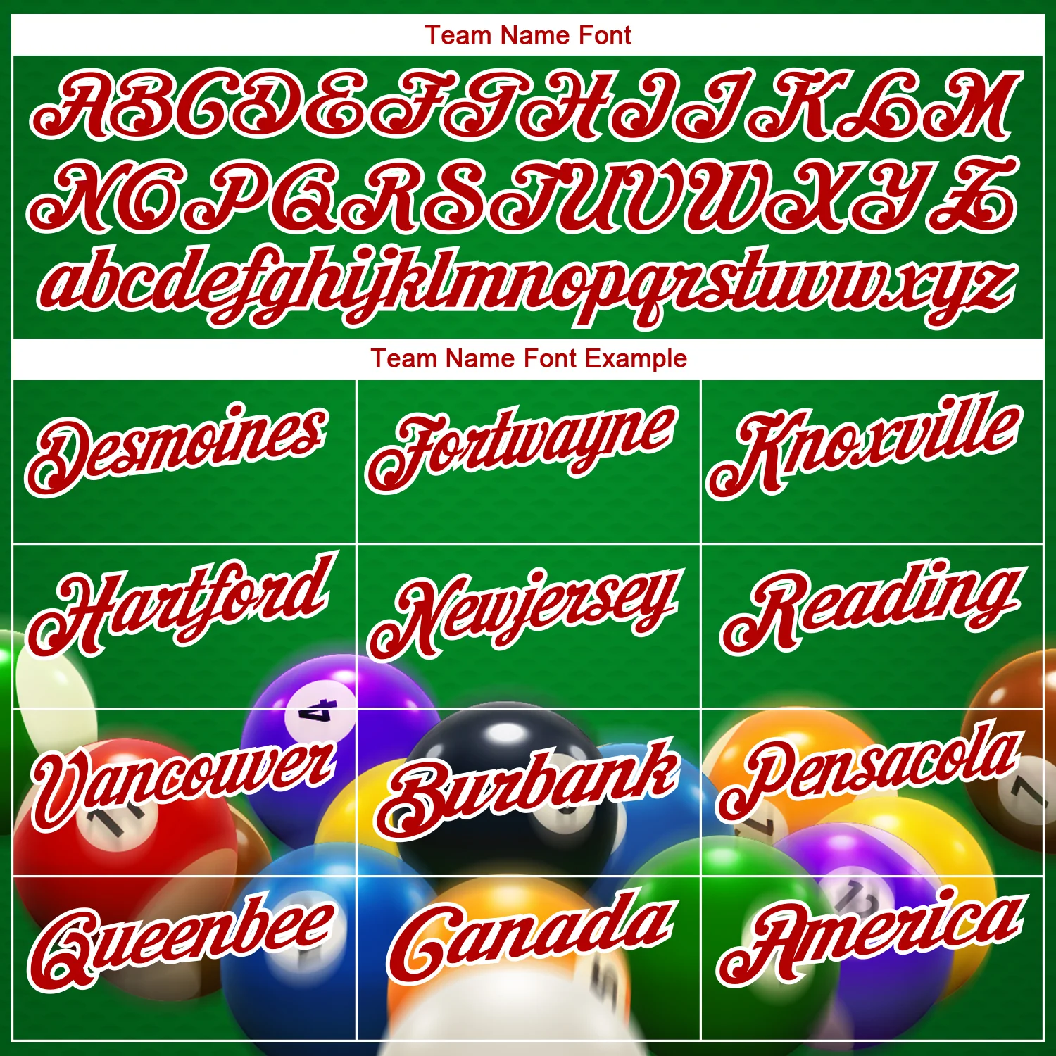 Custom Kelly Green Red-White 3D Pattern Design Billiards 8 Ball Performance Polo Shirt