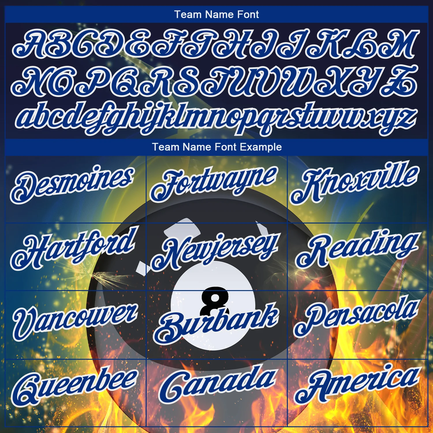 Custom Royal White 3D Pattern Design Flame Billiards 8 Ball Performance Polo Shirt