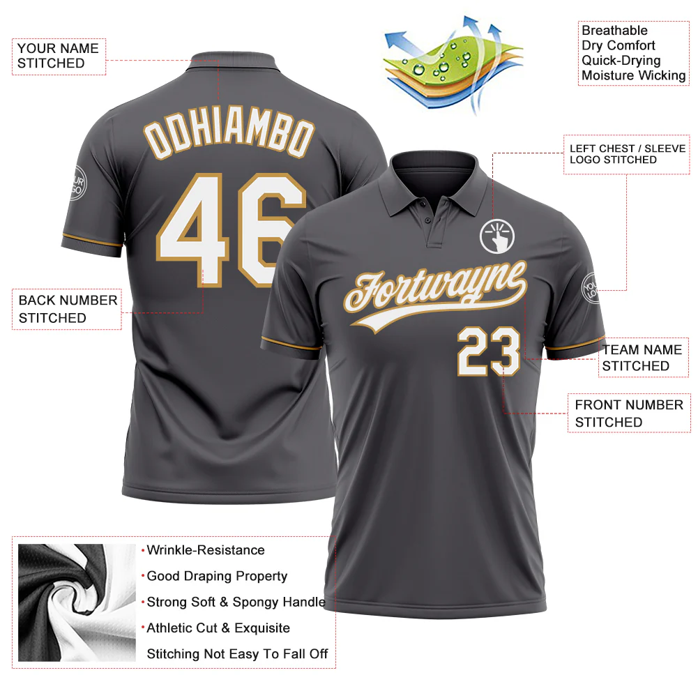 Custom Steel Gray Gold-White Performance Vapor Golf Polo Shirt