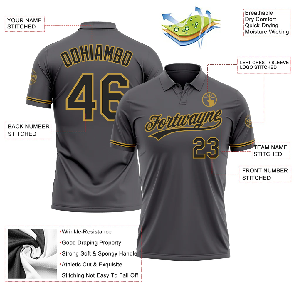 Custom Steel Gray Black-Old Gold Performance Vapor Golf Polo Shirt