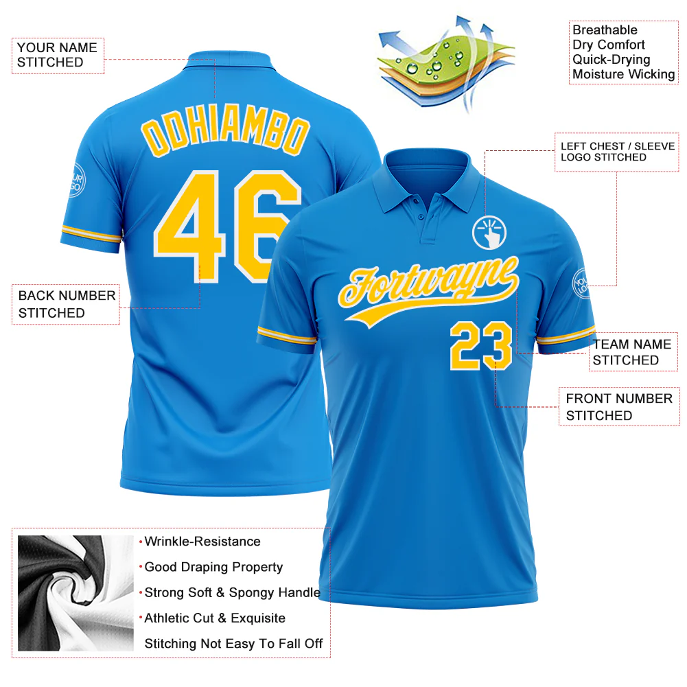 Custom Blue Yellow-White Performance Vapor Golf Polo Shirt