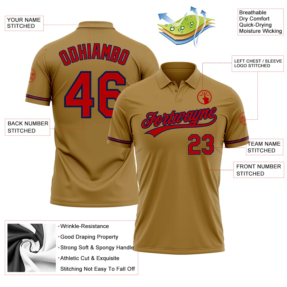 Custom Old Gold Red-Navy Performance Vapor Golf Polo Shirt