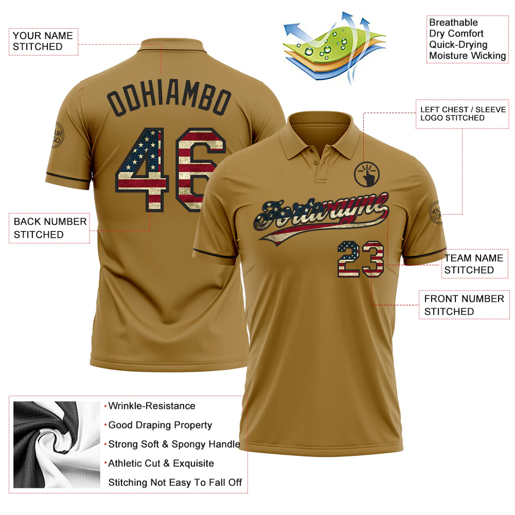 Custom Old Gold Vintage USA Flag-Black Performance Vapor Golf Polo Shirt