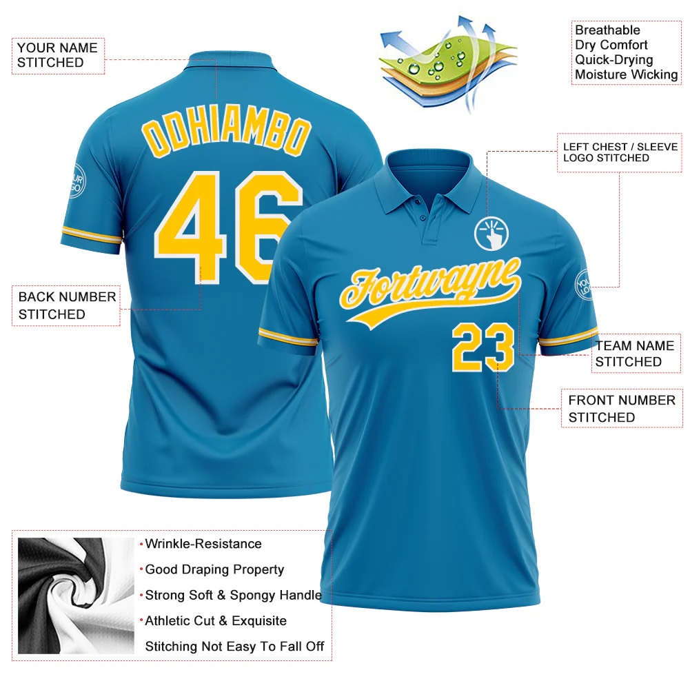 Custom Panther Blue Yellow-White Performance Vapor Golf Polo Shirt