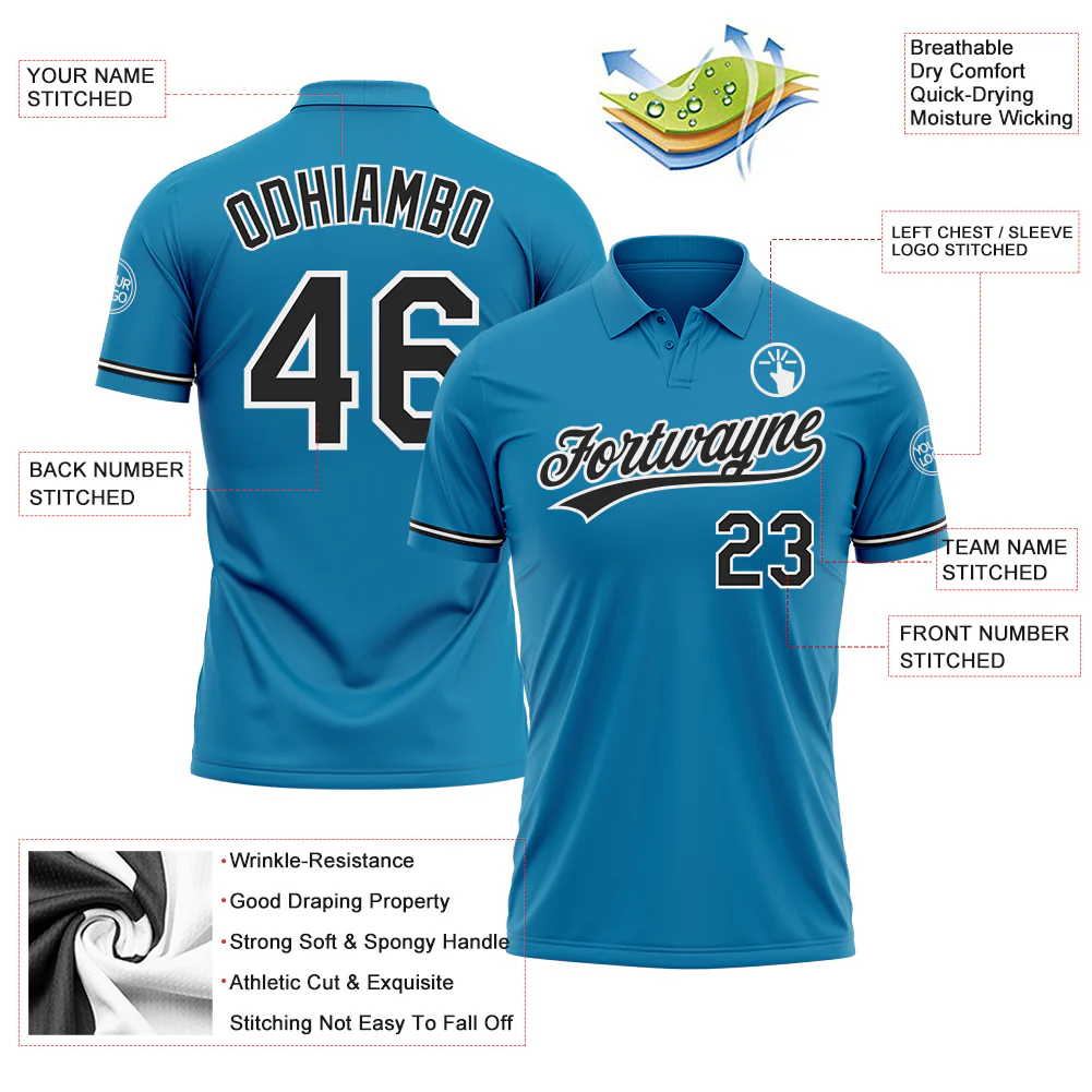 Custom Panther Blue Black-White Performance Vapor Golf Polo Shirt