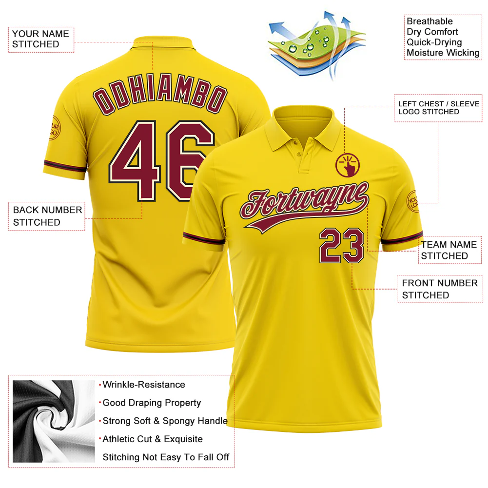 Custom Yellow Crimson Cream-Black Performance Vapor Golf Polo Shirt