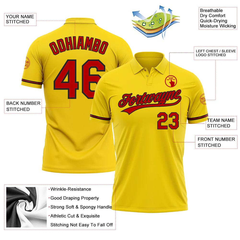 Custom Yellow Red-Black Performance Vapor Golf Polo Shirt