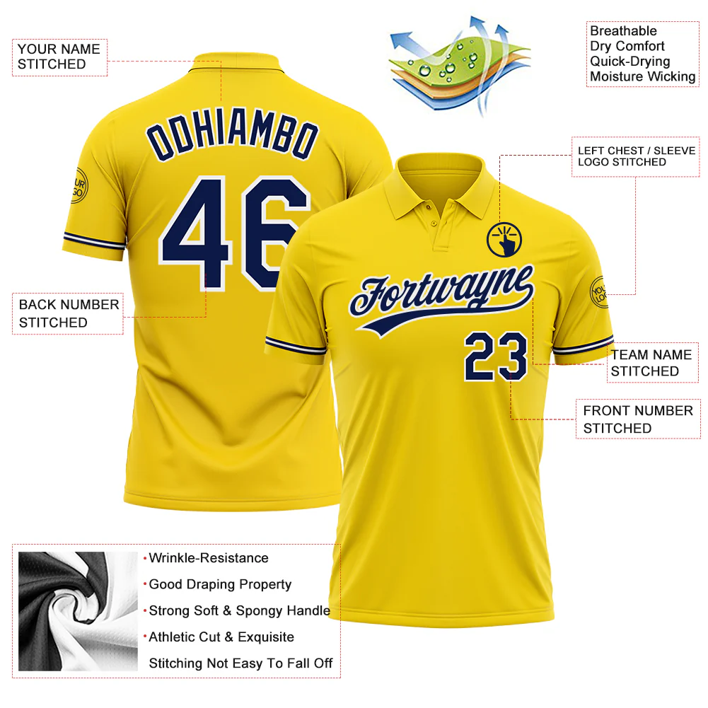 Custom Yellow Navy-White Performance Vapor Golf Polo Shirt