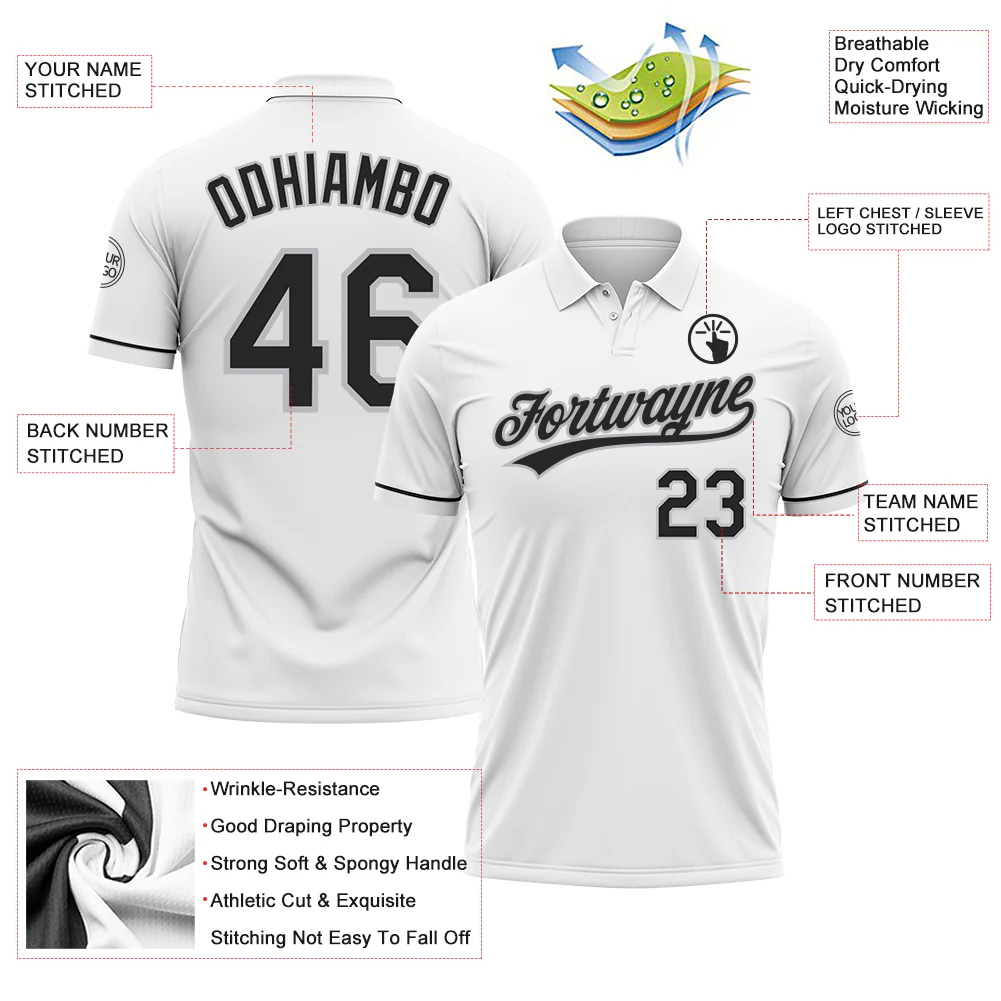 Custom White Black-Gray Performance Vapor Golf Polo Shirt
