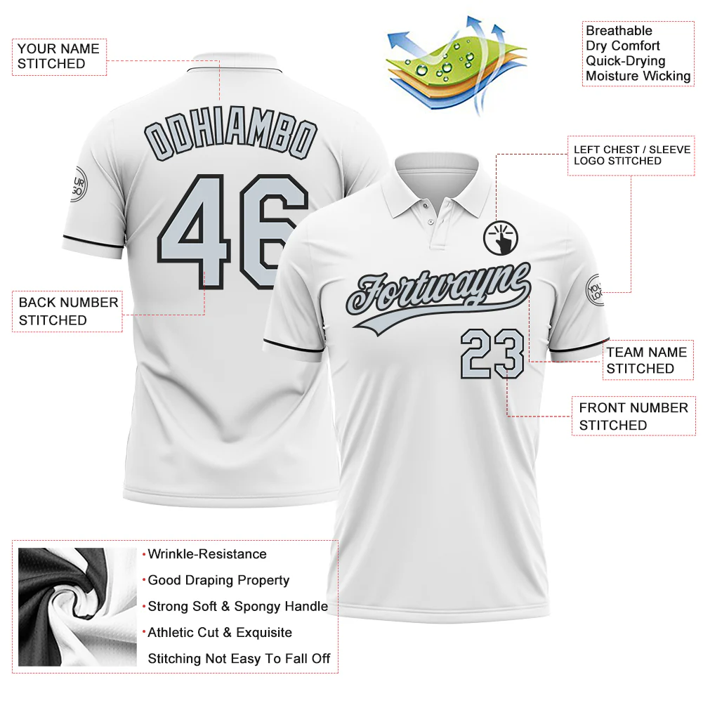 Custom White Silver-Black Performance Vapor Golf Polo Shirt