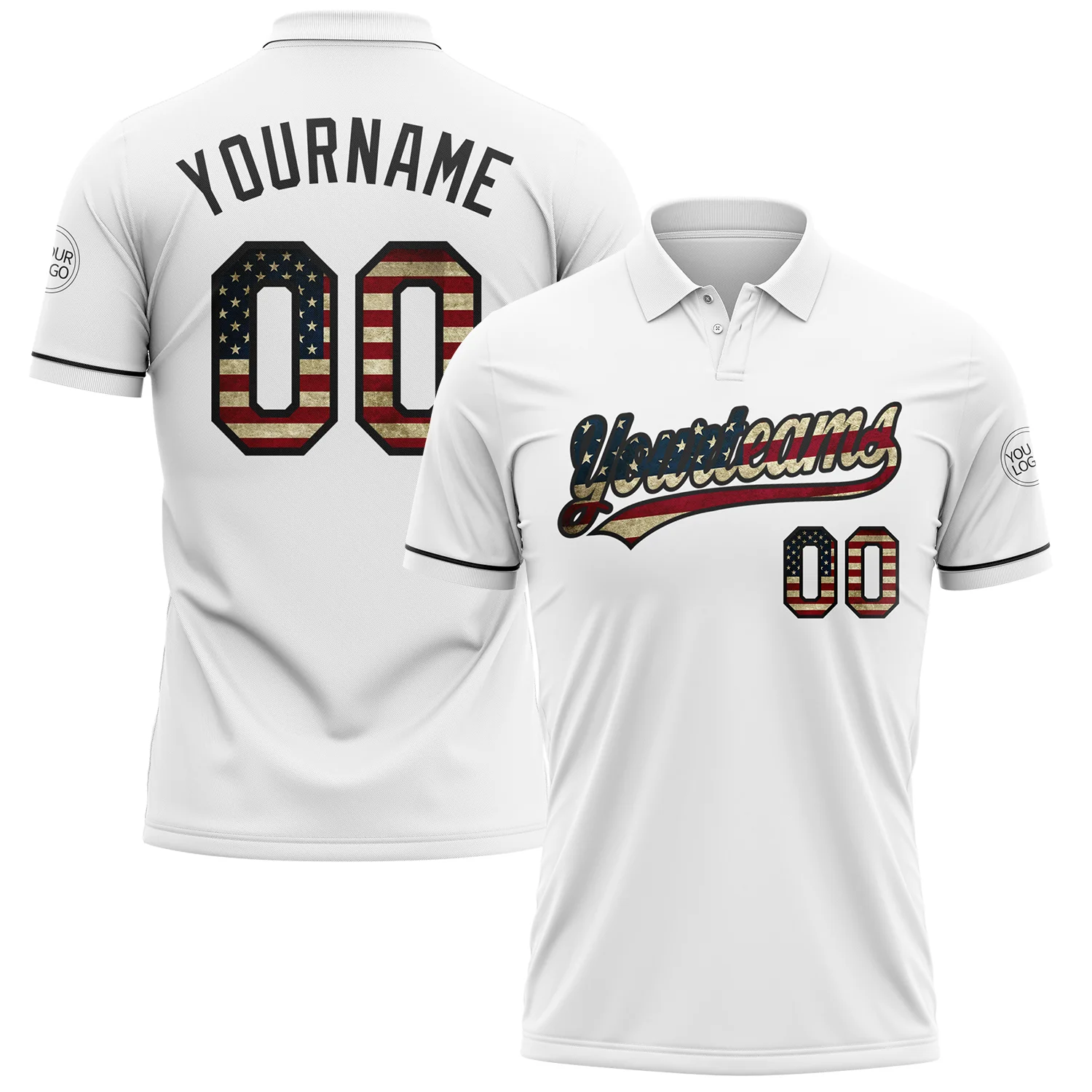 Custom White Vintage USA Flag-Black Performance Vapor Golf Polo Shirt