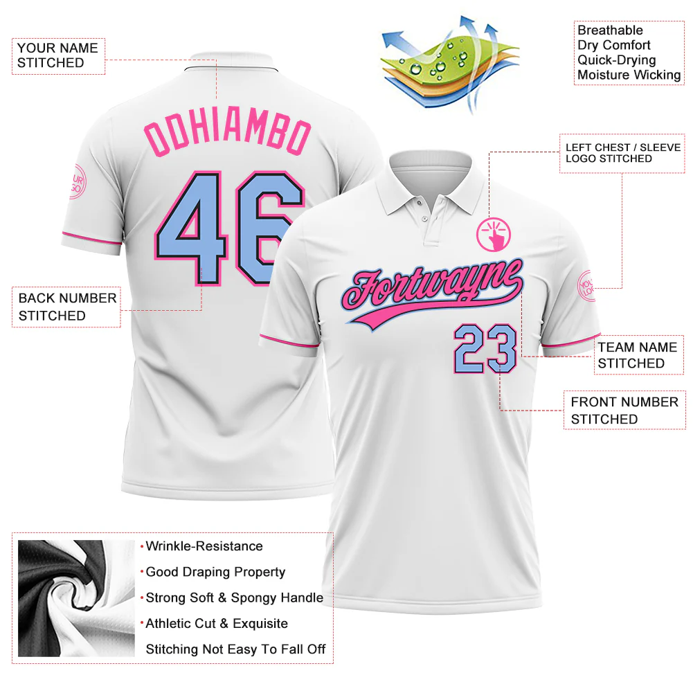 Custom White Light Blue Black-Pink Performance Vapor Golf Polo Shirt