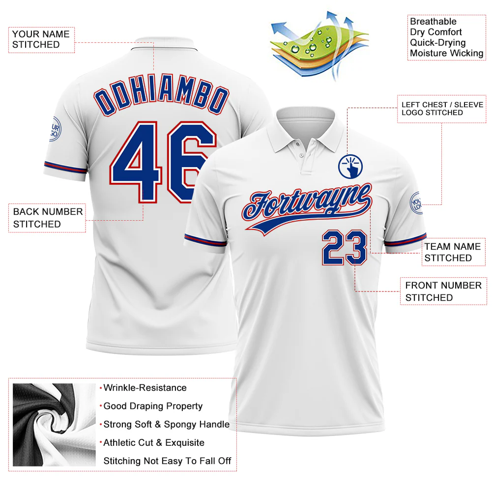 Custom White Royal-Red Performance Vapor Golf Polo Shirt