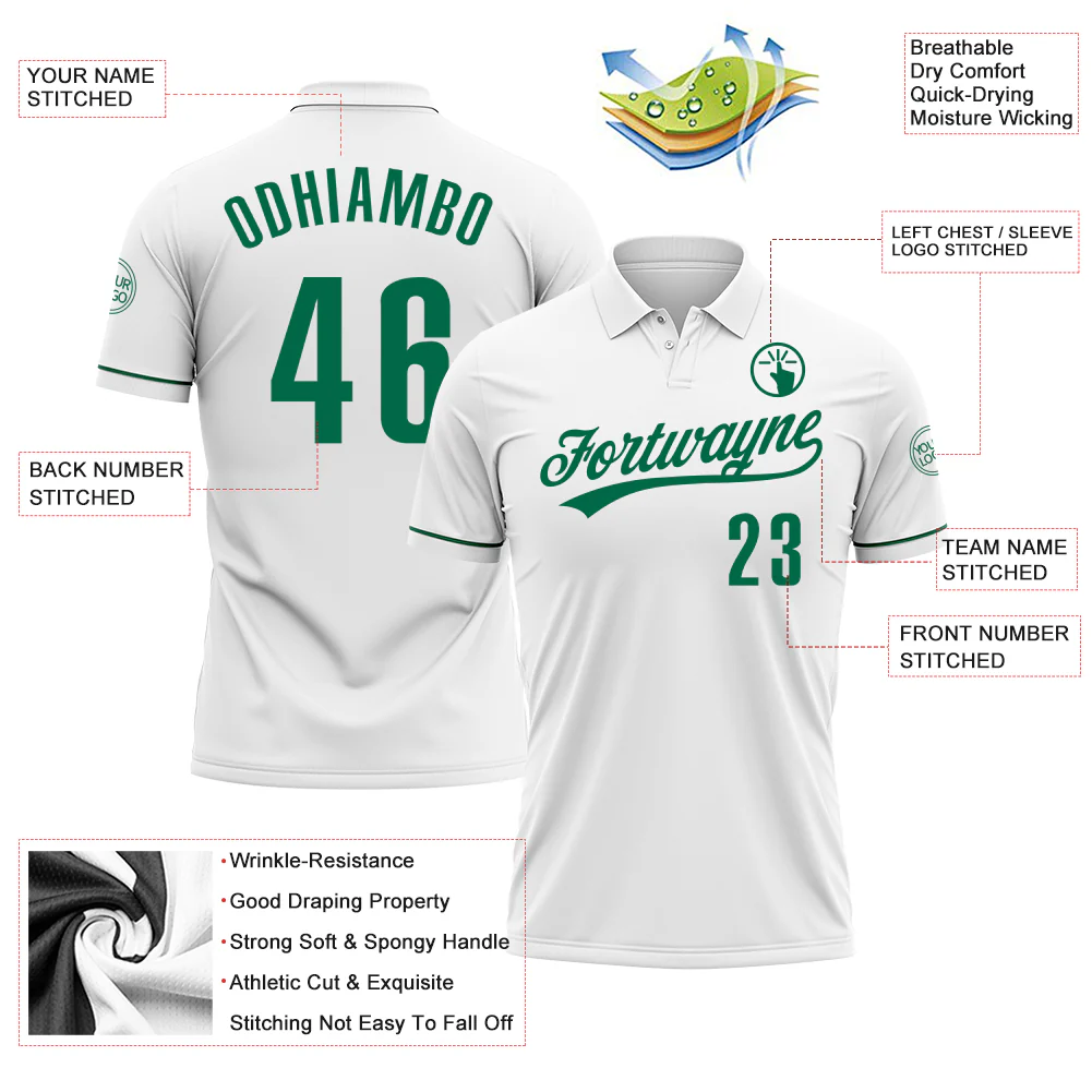 Custom White Kelly Green Performance Vapor Golf Polo Shirt