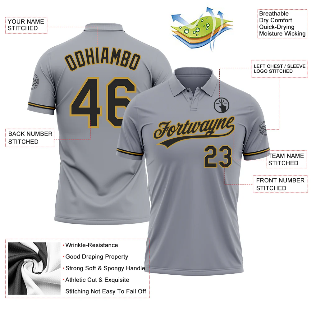 Custom Gray Black-Old Gold Performance Vapor Golf Polo Shirt