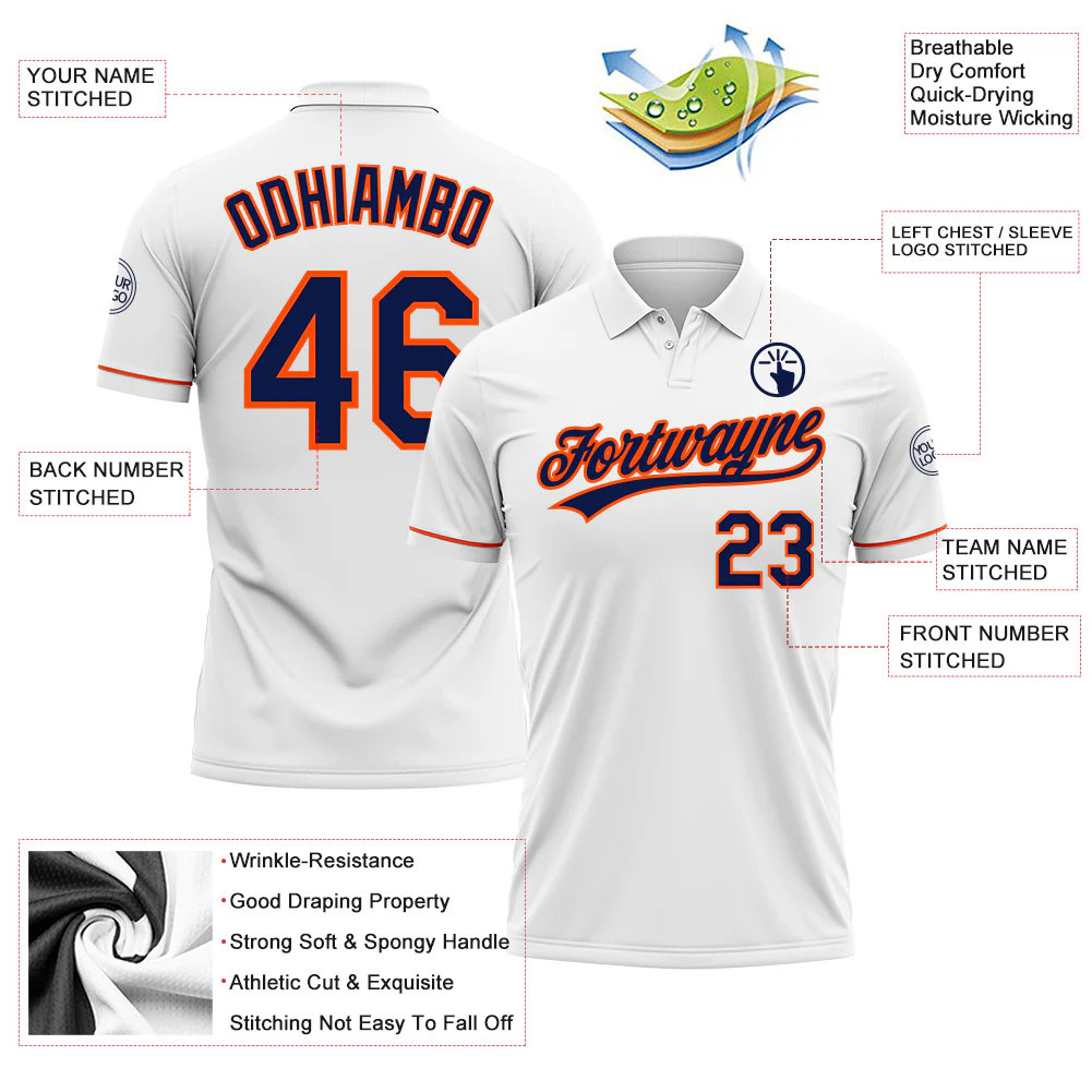 Custom White Navy-Orange Performance Vapor Golf Polo Shirt