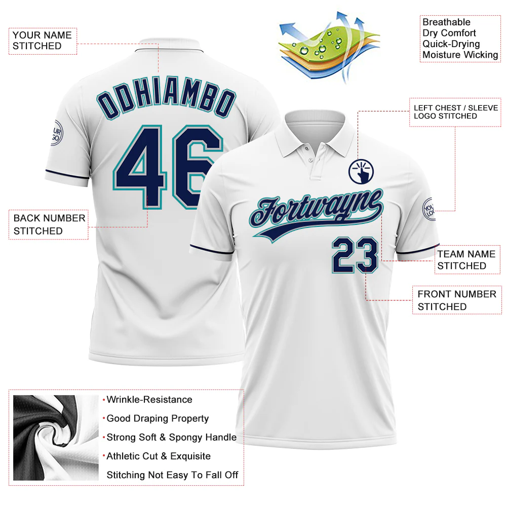 Custom White Navy Gray-Teal Performance Vapor Golf Polo Shirt