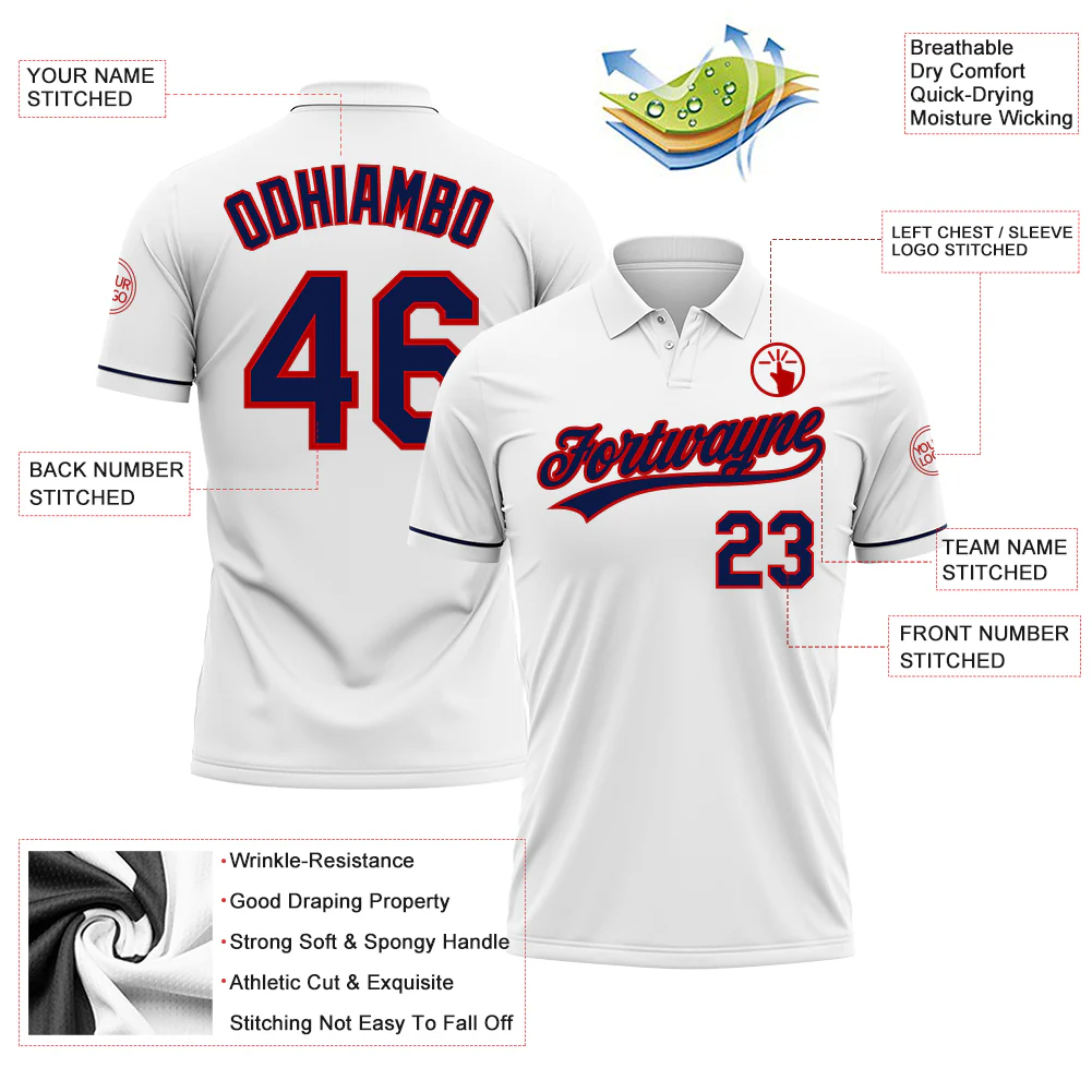 Custom White Red-Navy Performance Vapor Golf Polo Shirt