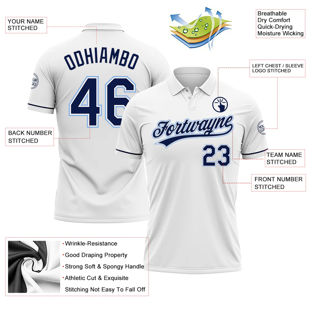 Custom White Navy-Light Blue Performance Vapor Golf Polo Shirt