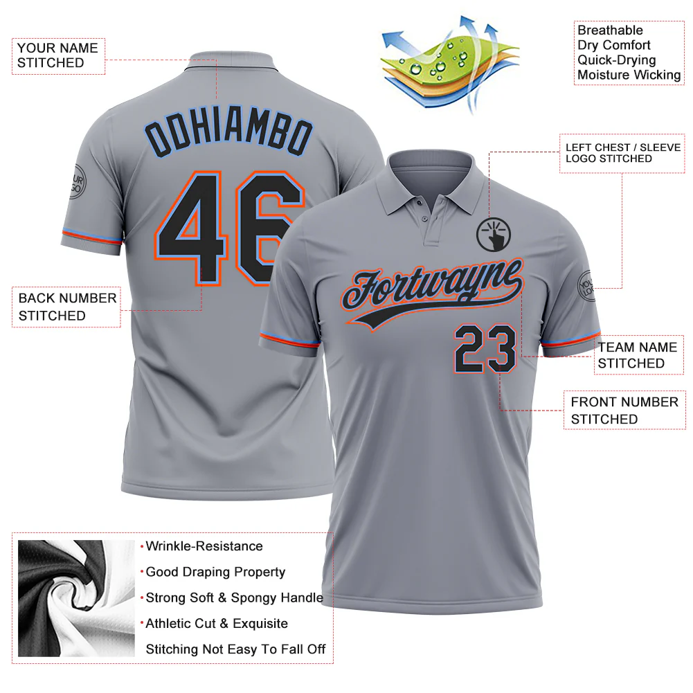 Custom Gray Black Powder Blue-Orange Performance Vapor Golf Polo Shirt