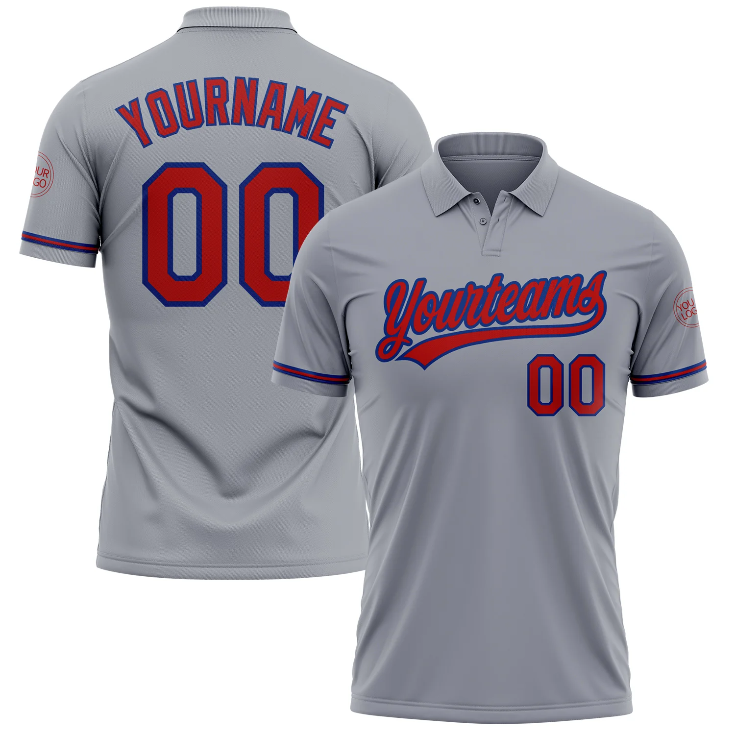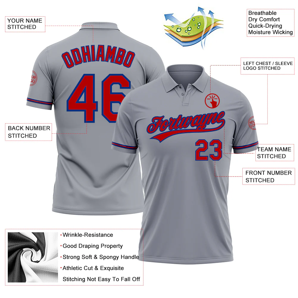 Custom Gray Red-Royal Performance Vapor Golf Polo Shirt