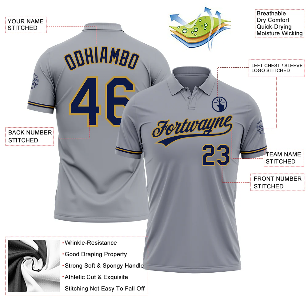 Custom Gray Navy-Old Gold Performance Vapor Golf Polo Shirt