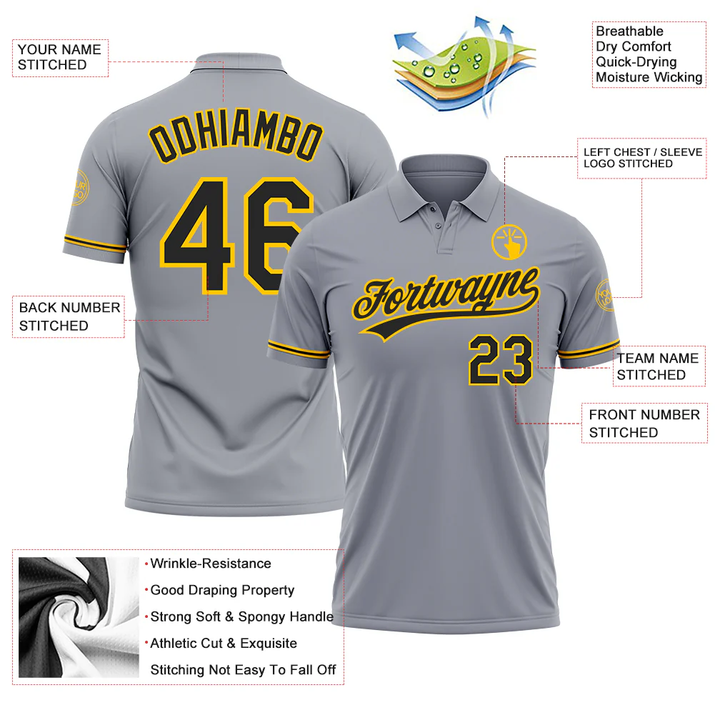 Custom Gray Black-Yellow Performance Vapor Golf Polo Shirt
