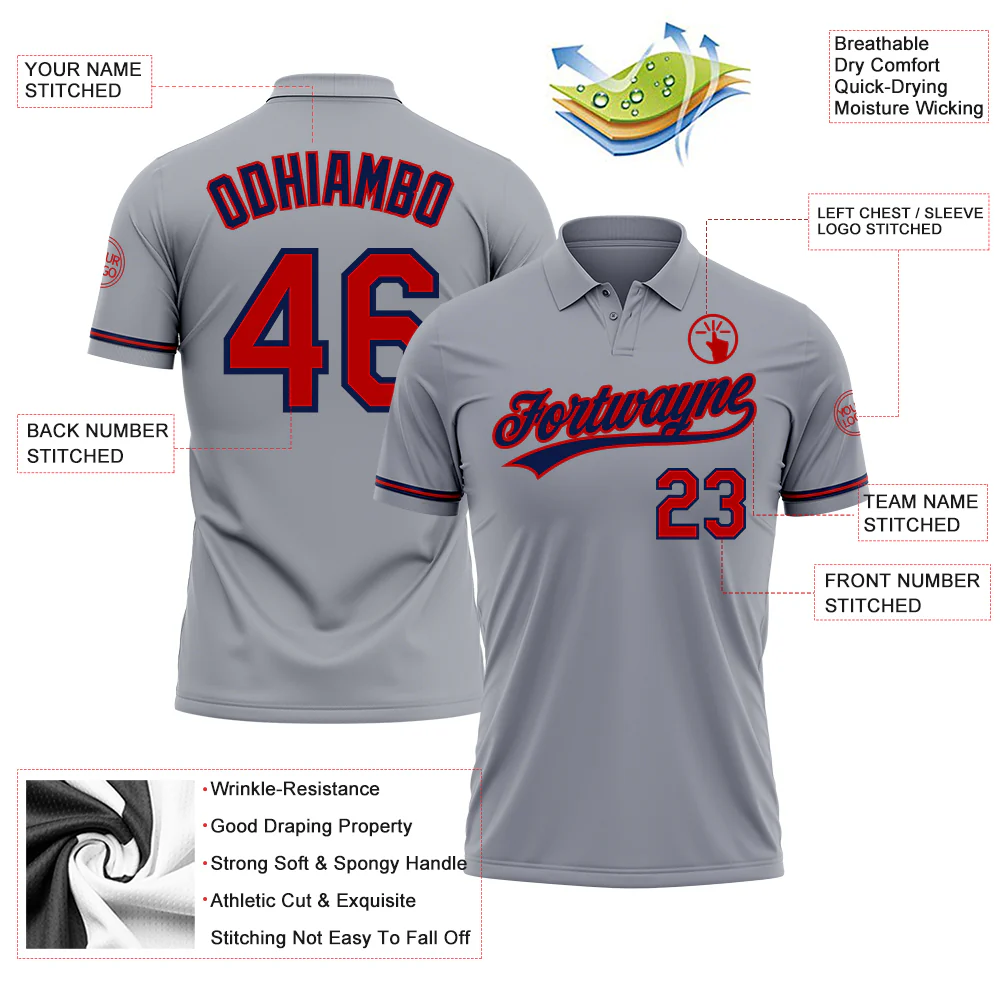 Custom Gray Red-Navy Performance Vapor Golf Polo Shirt