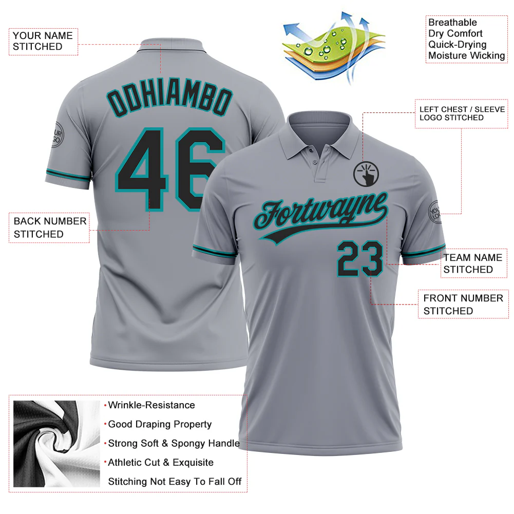 Custom Gray Black-Teal Performance Vapor Golf Polo Shirt