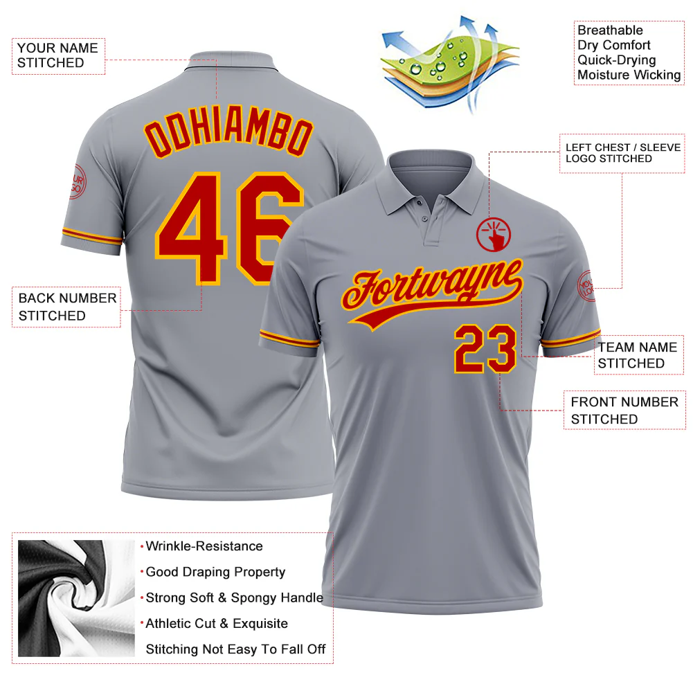 Custom Gray Crimson-Yellow Performance Vapor Golf Polo Shirt