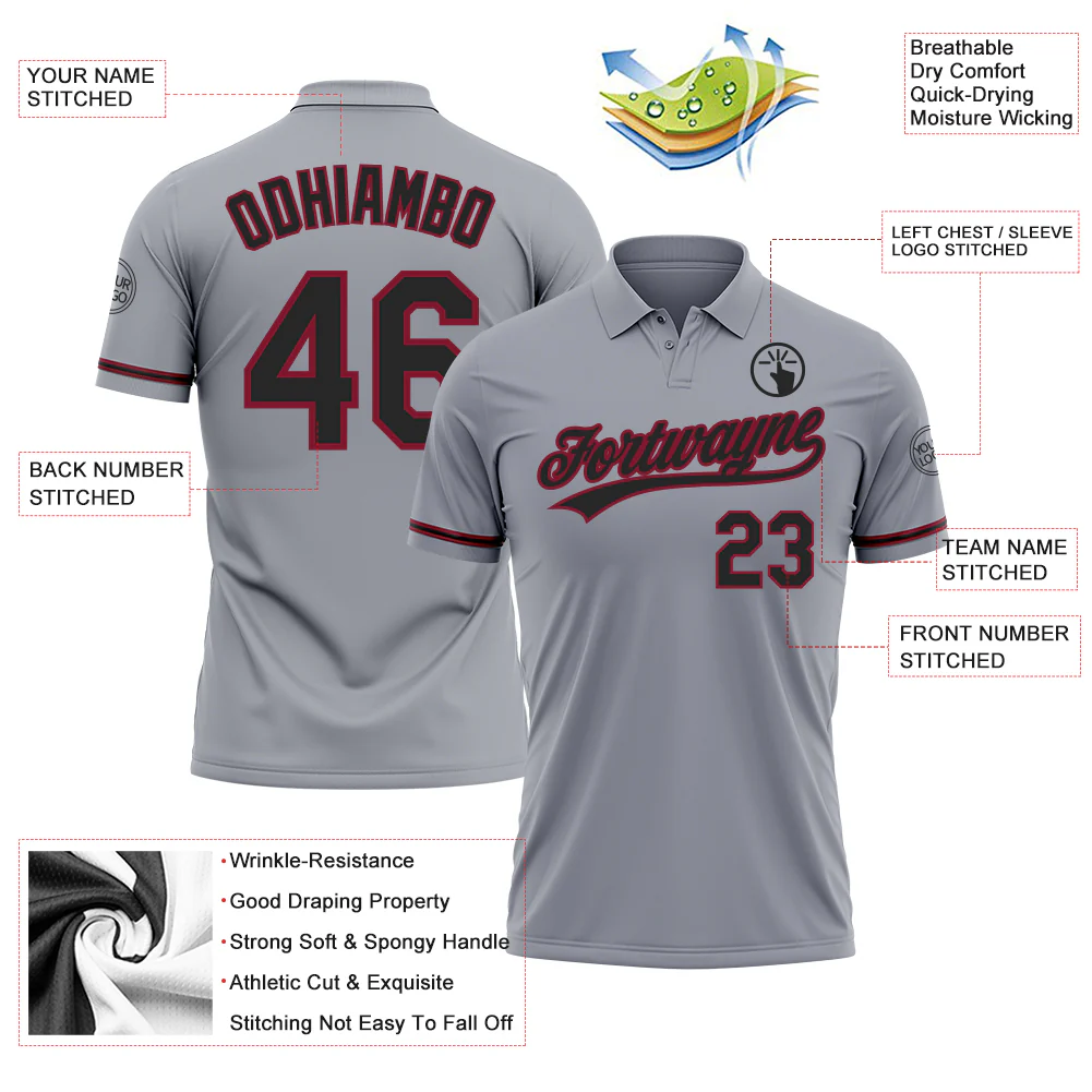 Custom Gray Black-Crimson Performance Vapor Golf Polo Shirt