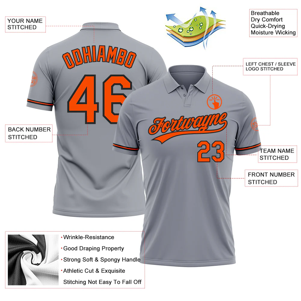 Custom Gray Orange-Black Performance Vapor Golf Polo Shirt