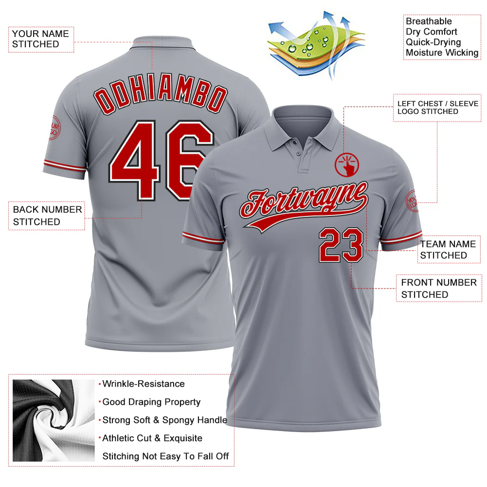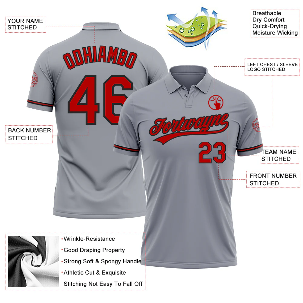 Custom Gray Red-Black Performance Vapor Golf Polo Shirt