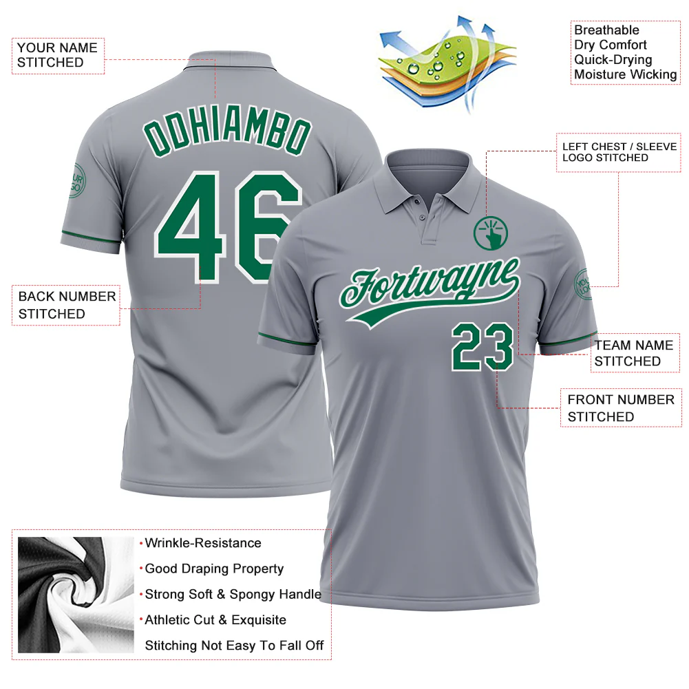 Custom Gray Kelly Green-White Performance Vapor Golf Polo Shirt