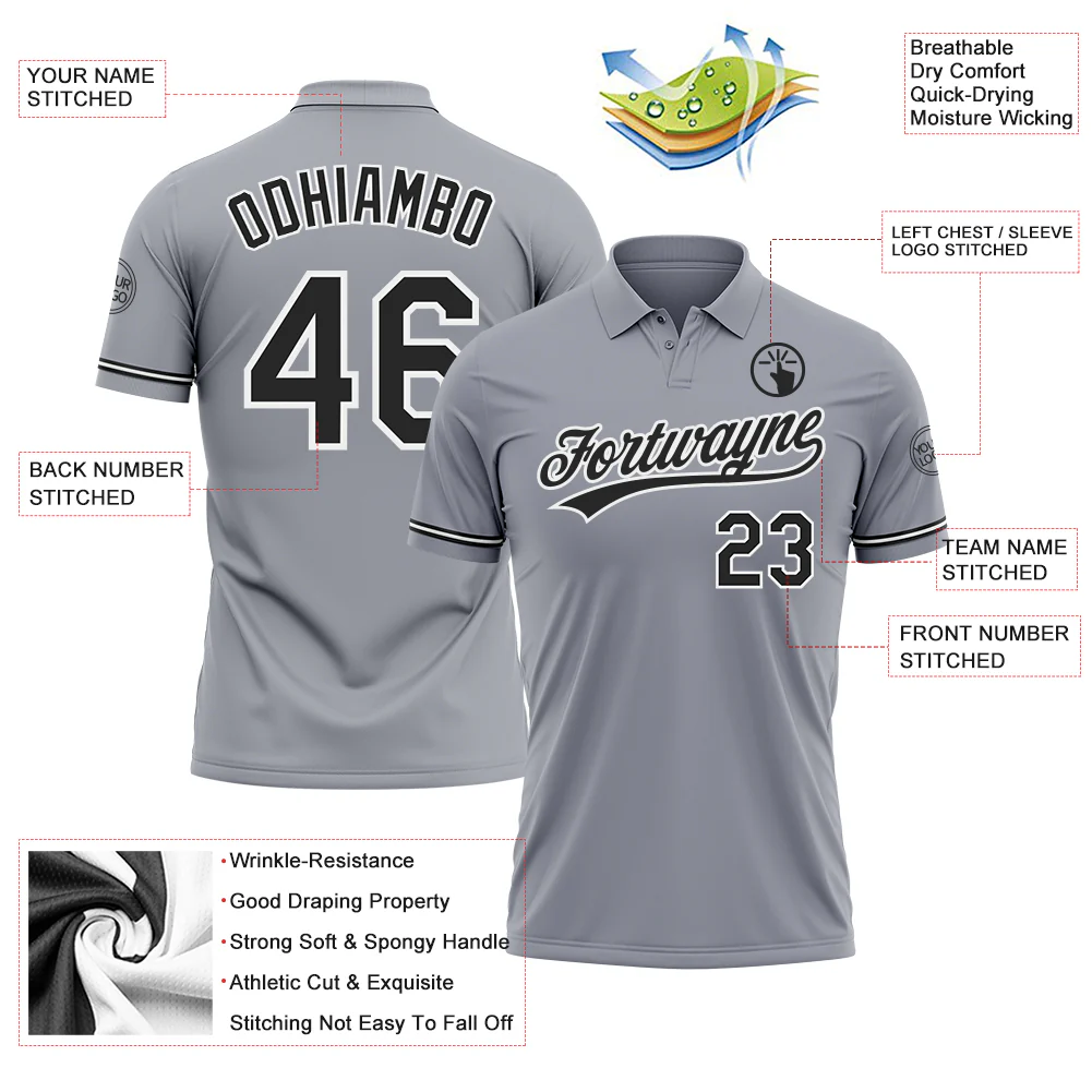 Custom Gray Black-White Performance Vapor Golf Polo Shirt