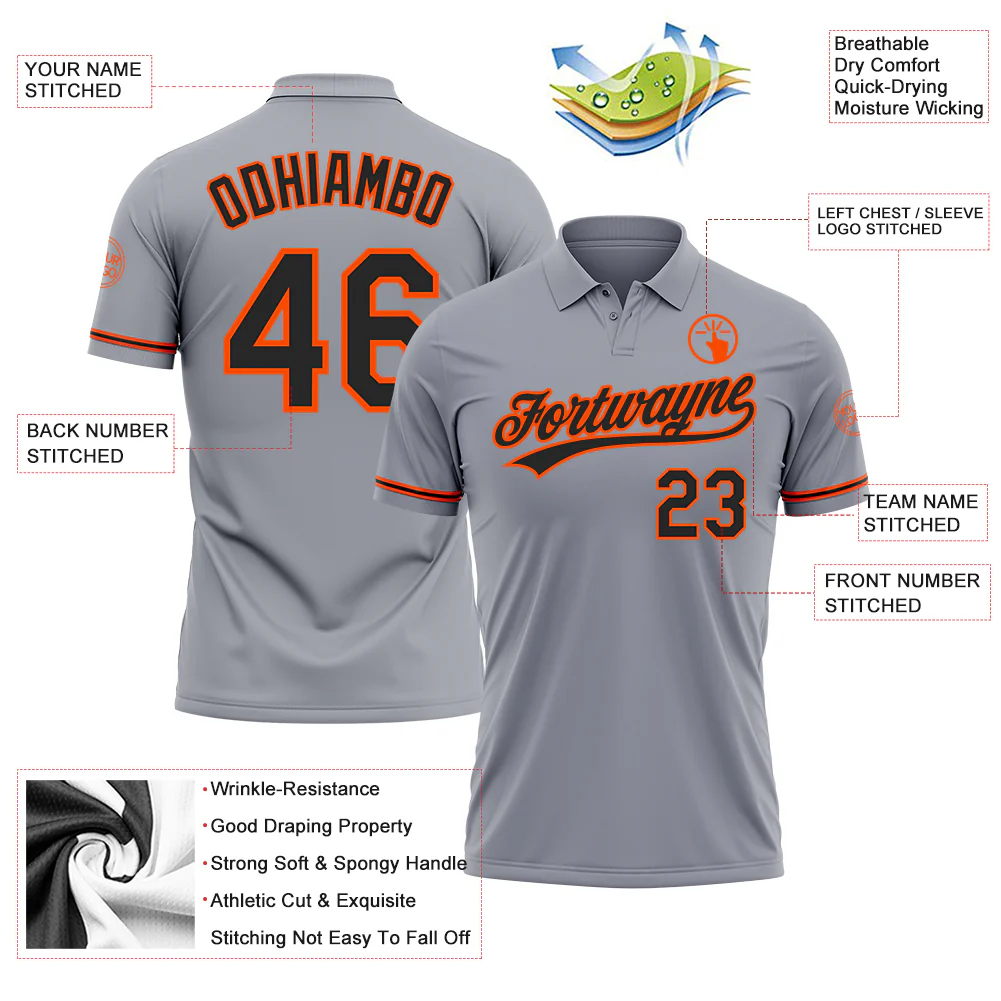 Custom Gray Black-Orange Performance Vapor Golf Polo Shirt