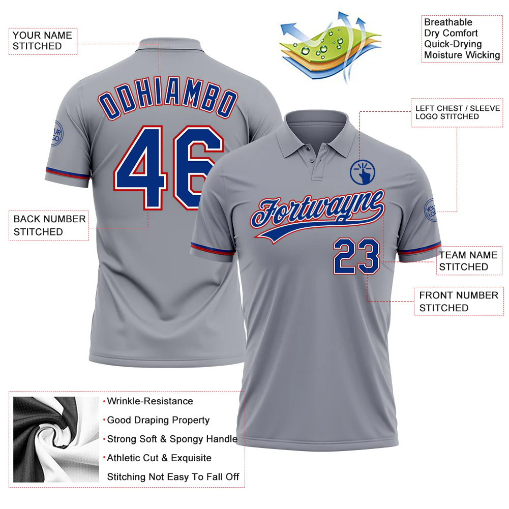 Custom Gray Royal-Red Performance Vapor Golf Polo Shirt